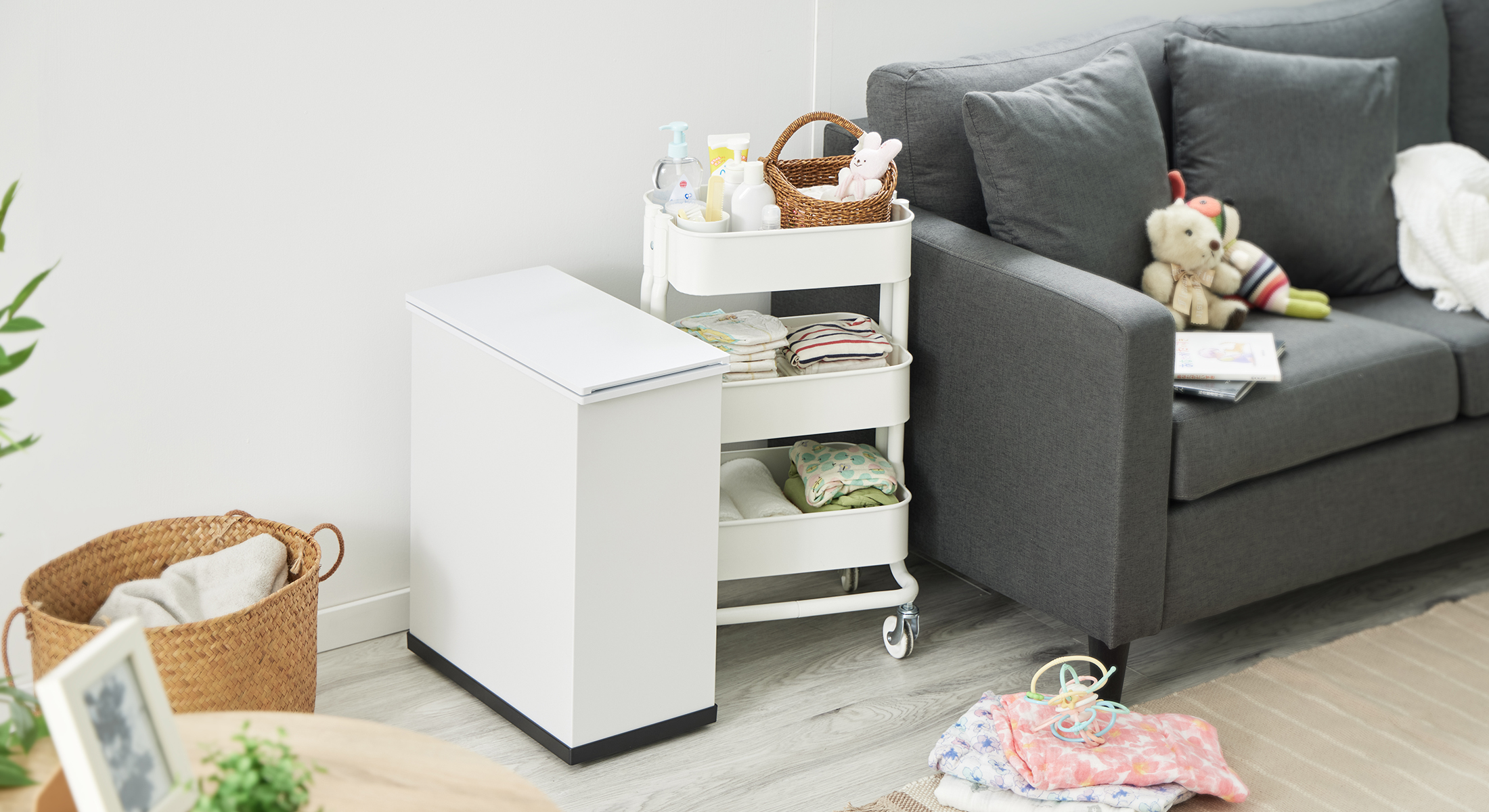 無機質なゴミ箱とは違い、リビングやキッチンにも自然に溶け込み、空間の美しさを損なわない。