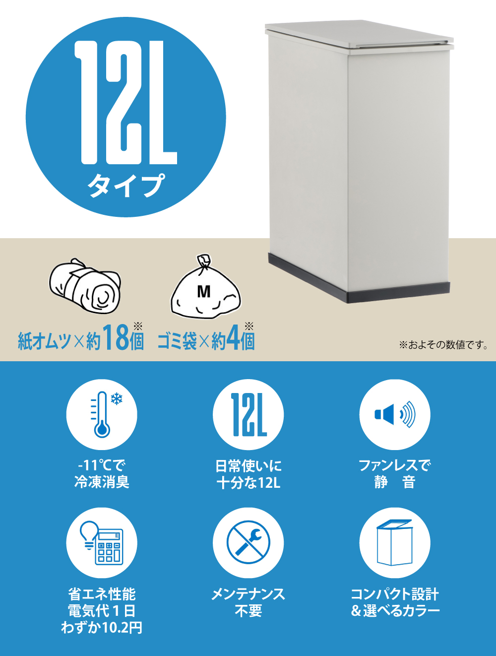 冷却力と静音性を両立した唯一の冷やすゴミ箱です。