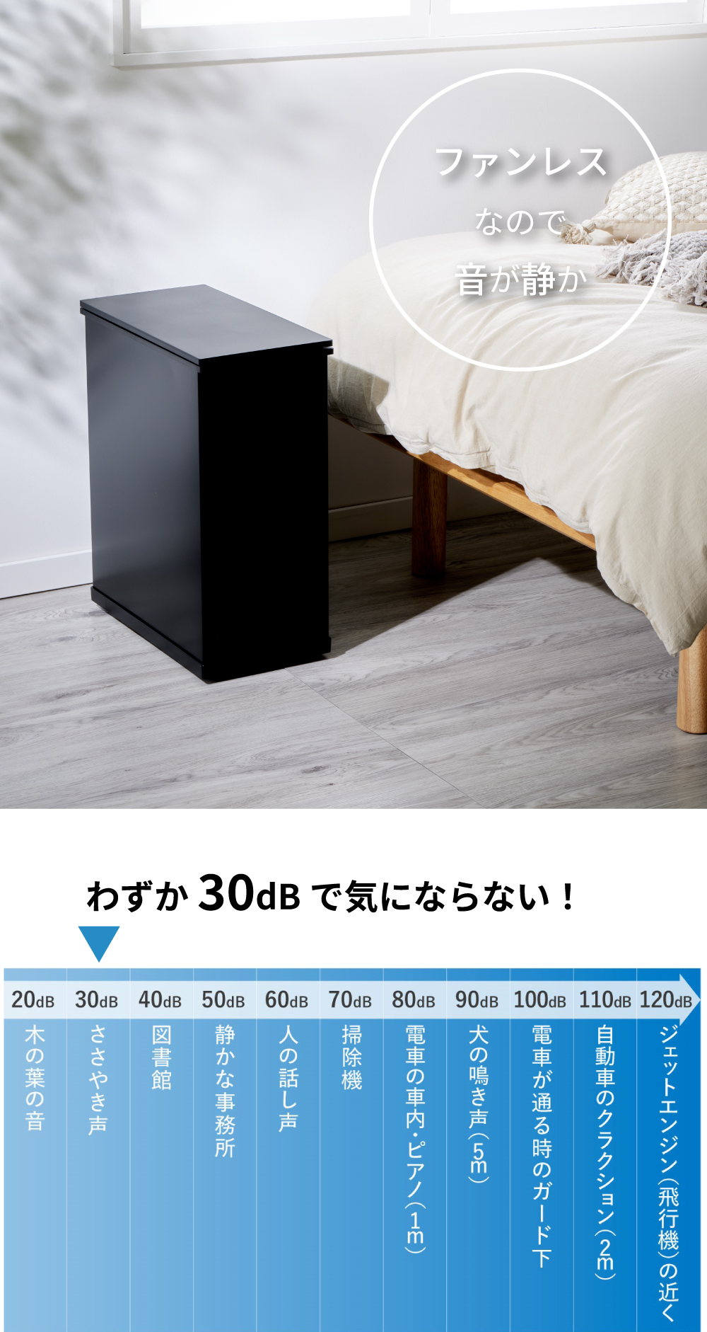 だから、寝室やリビングに置いても運転音が気になりません。